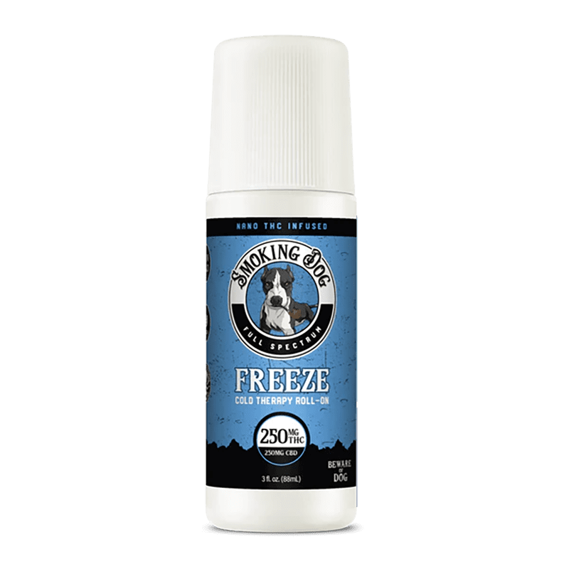 Smoking Dog Freeze Roll-On delivers a powerful, cooling topical experience in a convenient, mess-free applicator. This THC-infused roll-on combines 250mg of hemp-derived Delta-9 THC, 250mg of CBD, and the crisp cooling sensation of menthol for precise, targeted application.